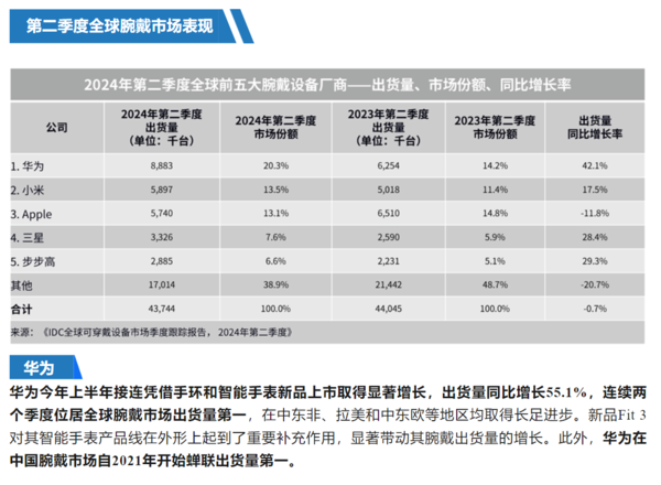 2024年二季度全球和中国腕戴市乐竞体育平台场:华为、小米都居前二