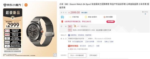 快科技7月19日消息,小米今晚除了手机产品之外,还将推出全新的智能手表小米手表S4 Sport。 目前,这款新品已经在京东上开启尝鲜价订购,定价2999元,享优先发货权利,而且赠送180天只换不修。 从外观和表带配色也能看出,这是一款...